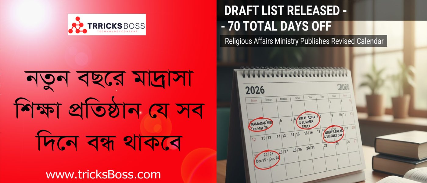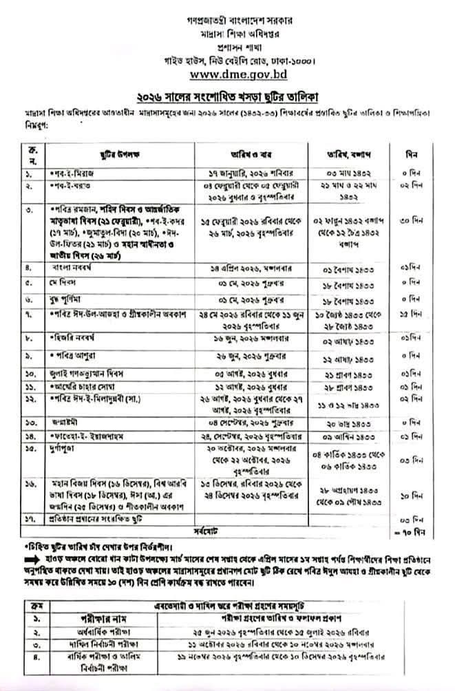 ২০২৬ সালের মাদরাসার সংশোধিত খসড়া ছুটির তালিকা প্রকাশ: মোট ছুটি ৭০ দিন