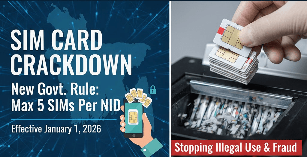 সিম কার্ড ব্যবহারে কড়াকড়ি: ১ জানুয়ারি থেকে একজনের নামে সর্বোচ্চ ৫ সিম