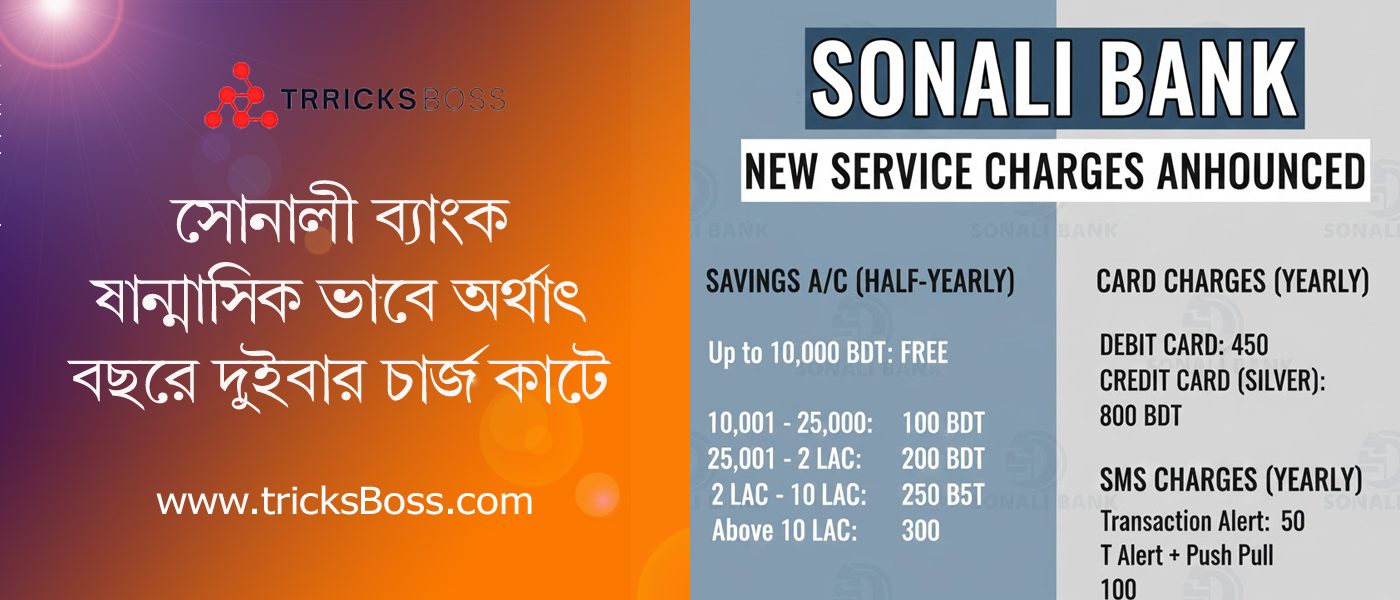 সোনালী ব্যাংকের বার্ষিক সার্ভিস চার্জ নির্ধারণ: জেনে নিন নতুন ফি ও নিয়মাবলি