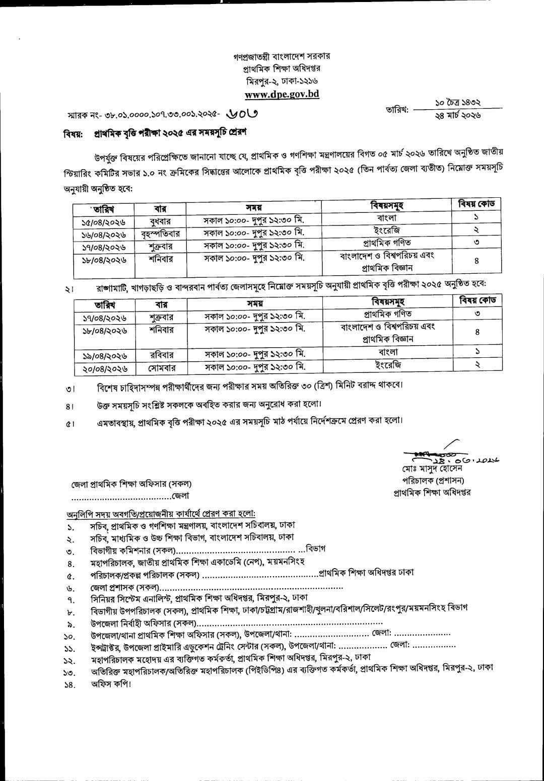 | ১৮ এপ্রিল, ২০২৬ | শনিবার | প্রাথমিক বিজ্ঞান ও বাংলাদেশ ও বিশ্বপরিচয় | সকাল ১০:০০ – দুপুর ১২:৩০ |